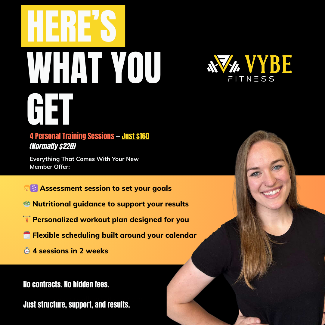 This isn’t your average gym. Vybe is ego-free, supportive, and strength-first. You’ll be surrounded by people who are all focused on getting better—not judging others. And you’ll never feel lost—our coaching keeps you grounded and confident.